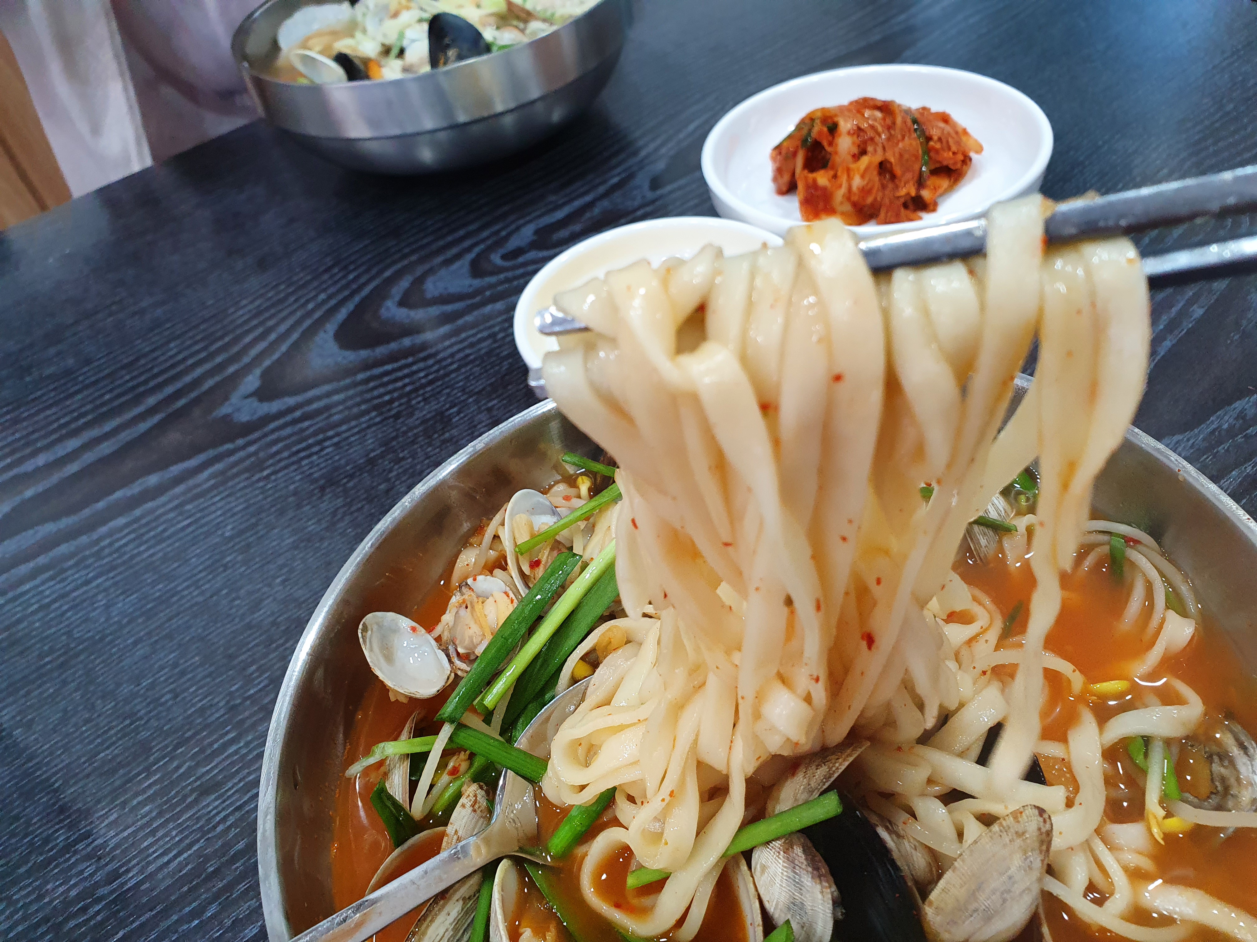 면도 얇아서 좋았어요. 저는 개인적으로 두꺼운 면을 정말 안좋아하거든요. 특히 칼국수를 먹을 때 두꺼운 면을 사용을 해서 먹다가 이거 덜익은거 아닌가 싶을 정도로 나오는 집들이 있어요. 다행스럽게도 여기는 정말 얇은 편에 속하는 면을 사용을 하고 있어서 바로 호로록 하기에 괜찮은 집이였습니다.