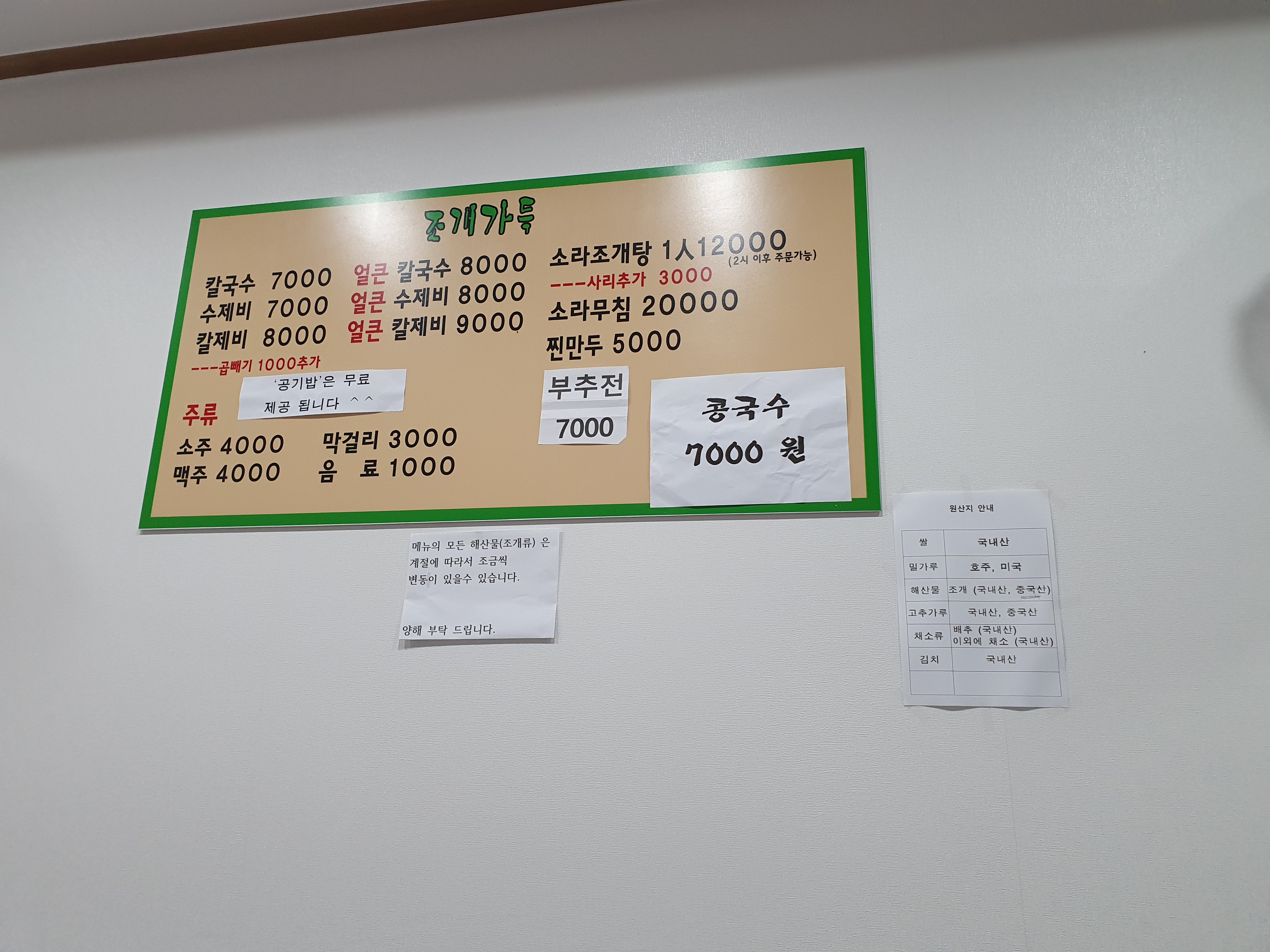수제비랑 칼국수를 위주로 팔고 있는 집인데요. 요즘 몇일 사이 소나기가 내렸다가 다시 풀리고 하면서 날씨가 울그락 불그락 할 때는 왠지 칼국수 한그릇 땡기더라구요. 이 곳은 생긴지 오래 되지는 않았고 한번 궁금해서 들어가 보았습니다.